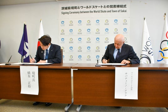 令和7年2月13日(木)、茨城県境町(町長:橋本正裕)は「スポーツを核としたまちづくり」の一環として、スケートボードやインラインスケート、スクーター(キックボード)等のアーバンスポーツの国際的な統括団体(国際競技連盟)である「ワールドスケート」(会長:サバティーノ・アラク、住所:スイス共和国ローザンヌ)と、2025年から開催される世界大会(※)について、境町を拠点開催地とする覚書を締結いたしました。