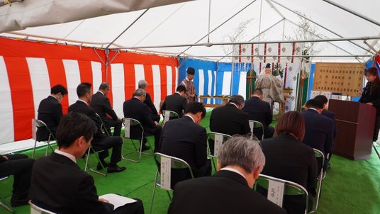 八戸共配センターの着工に際し、地鎮祭を執り行いました。式典には、当社関係者、工事関係者の皆さま18名が参列し、工事の安全と守護を祈念いたしました。