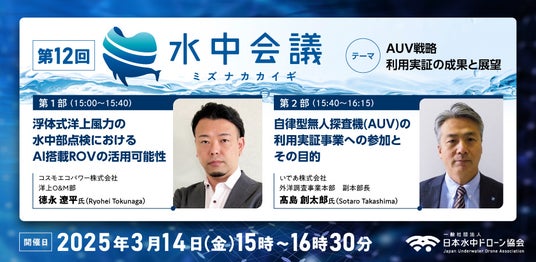 日本水中ドローン協会(事務局:東京都台東区、代表理事:小林康宏、運営:株式会社スペースワン)は、2025年3月14日(金)に「第12回水中会議(ミズナカカイギ)」をオンライン開催いたします。
