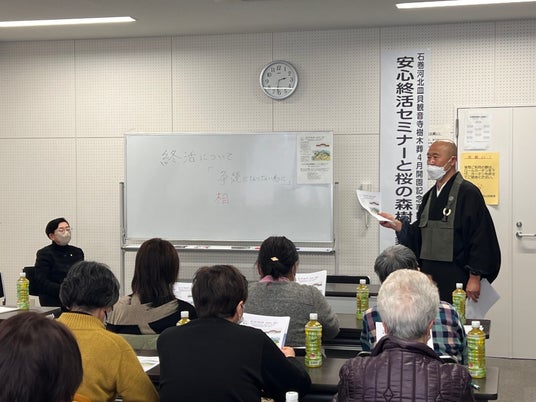 また、近年の多死社会に対応するため、終活をテーマにしたセミナーをこれまでに累計 10 回以上開催し、高齢者の悩みに寄り添ってきました。これらの相談活動を通じて、家族を亡くし、故郷を離れて復興住宅で暮らす高齢者たちの、終末や死後への不安が浮き彫りになると共に、こうした終末不安は、被災地だけでなく、日本全体が抱える深刻な社会課題となっています。そこで、「てあわせ」は寺院、士業、葬祭業と連携し、火葬・葬儀・樹木葬を生前に契約して万一に備えることができる「生前契約プラン」の提供と、墓じまいや遺品整理、空き家問題などにも対応する「終活窓口」の開設を決定しました。