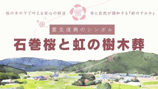 震災後の平成 25 年に設立した「一般社団法人てあわせ( https://teawase.net )」は、犠牲者の冥福と震災復興を祈る鎮魂の桜植樹活動始めました。被災地沿岸に千本の桜を植樹し、宮城県石巻市に鎮魂の森を開園しました。森の中央には犠牲者を悼む慰霊碑を建立。また復興支援で訪れた倍賞千恵子さんが植樹した桜樹木葬は、シンボルツリーとして希望の花を咲かせています。