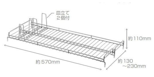 洗い物の量や設置スペースに応じて伸縮させて使用できる、スリムなシンク用の水切りかごです。