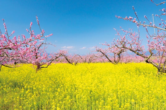青空と鮮やかな黄色の組合せは、とてもフォトジェニック。菜の花はもちろん、桜やチューリップ、ネモフィラなど、春に咲き誇るカラフルな花も含め、花畑を眺めたり、花咲く木々を見ているだけでも元気をもらえそうな春絶景がたくさんあります。ランキング情報を参考に「菜の花畑」へおでかけしてみてはいかがでしょう。