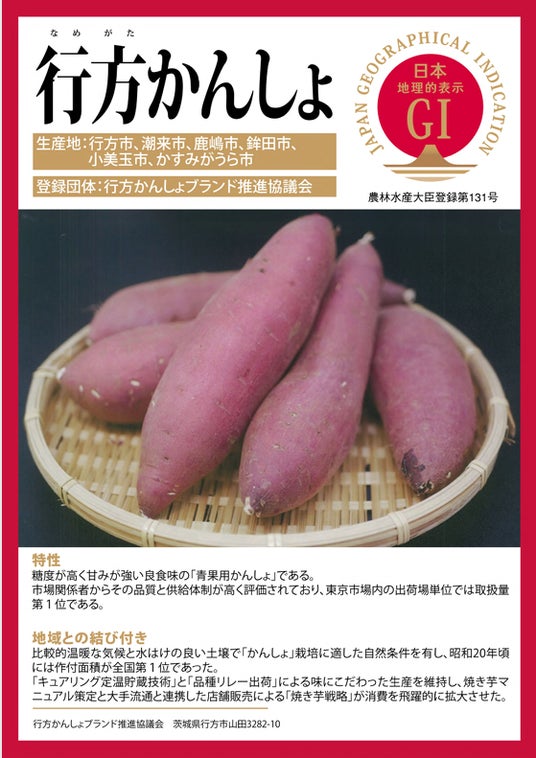 サツマイモでは東日本初。「行方かんしょ」は、地理的表示(GI)保護制度に登録されました。