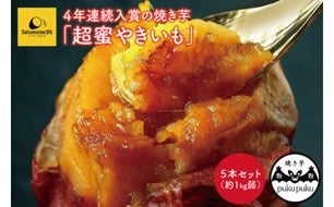 【さつまいも博/全国やきいもグランプリ 4年連続入賞!!】4年連続入賞の焼き芋「超蜜やきいも」5本セット(約1kg)・寄附額:¥10,000