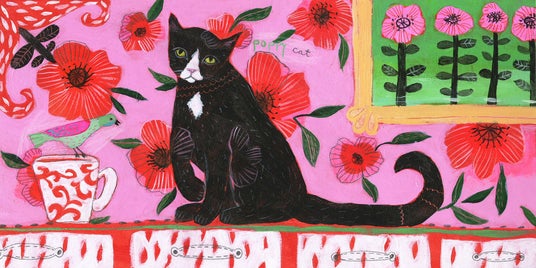 画面の中に独自の記号や文字を取り入れたカレンの作品は観る人の心に暖かく語りかけてくる。
