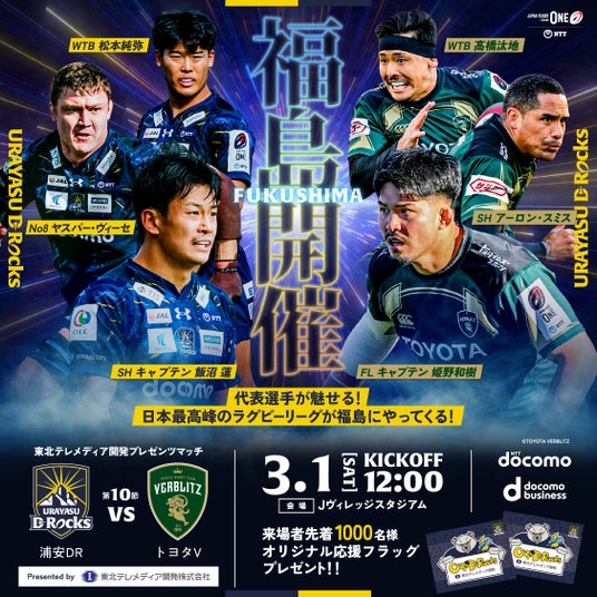 この度、NTT JAPAN RUGBY LEAGUE ONE 2024-25 DIVISION 1第10節トヨタヴェルブリッツ戦において、東北テレメディア開発株式会社(本社:宮城県仙台市、代表取締役社長:渋谷 潤、以下東北テレメディア開発)がマッチパートナーとして、当日は"東北テレメディア開発プレゼンツマッチ"を開催することが決定いたしました。