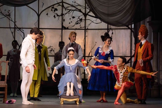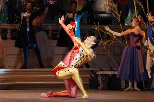 本作には実力派の日本人ダンサーたちも出演している。2020年に入団した日本出身の若手ソリスト・五十嵐大地は道化役を演じ、2幕の舞踏会の冒頭から驚くべき高さの跳躍を連発し、その踊りに思わず目を奪われる。