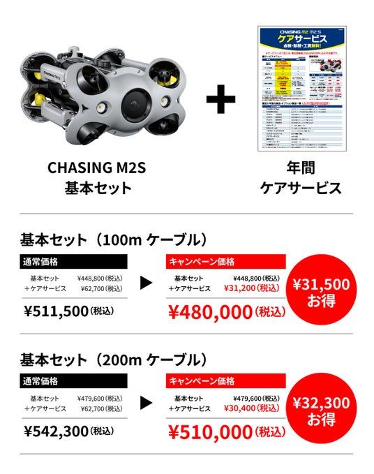 CHASING M2 S + 年間ケアサービスがセットになったお得なパックです。