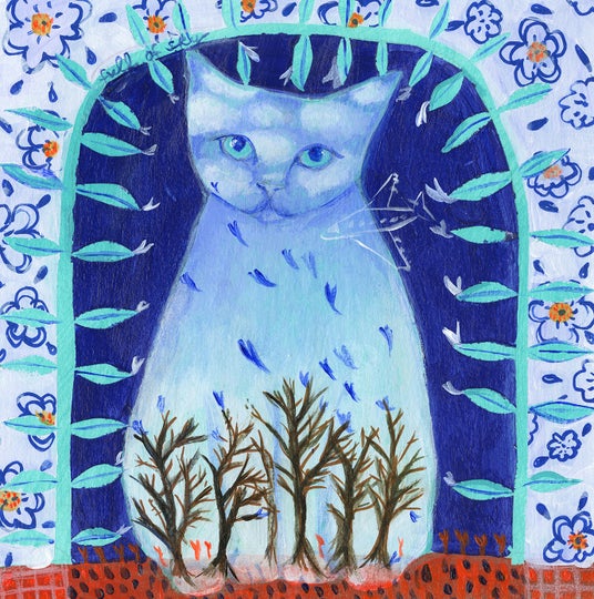 画面の中に独自の記号や文字を取り入れたカレンの作品は観る人の心に暖かく語りかけてくる。