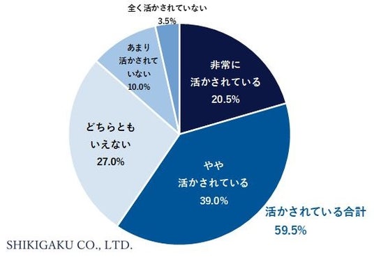 では入社時に研修を受けた方は、実際の業務にどの程度役に立っていると実感しているのでしょうか。その内訳をみてみると、「活かされている」(非常に活かされている/活かされているの合計)は59.5%でした。多くの人が「活かされている」と回答した一方で、残りの4割近くの方は実際に受けた研修が活かされているのか疑問に思っているという結果でした。