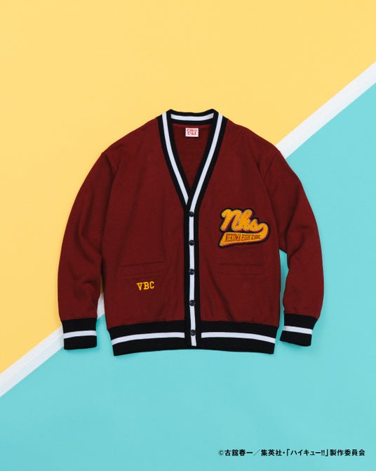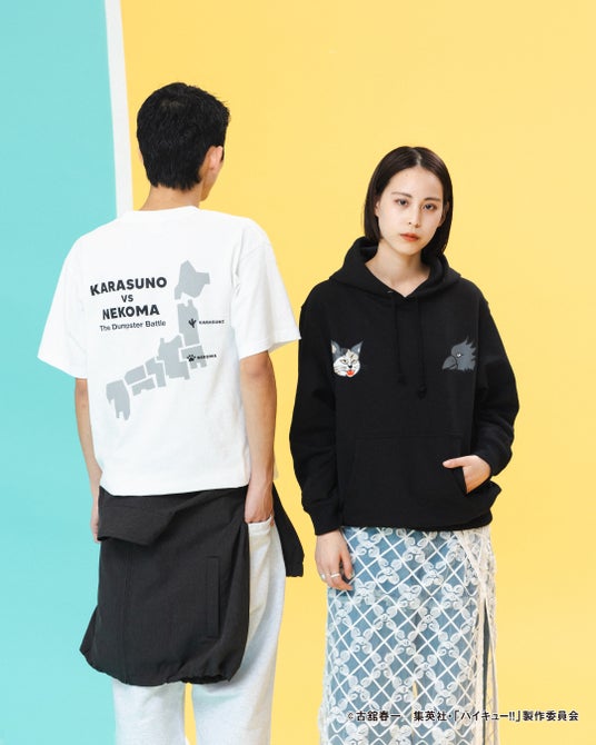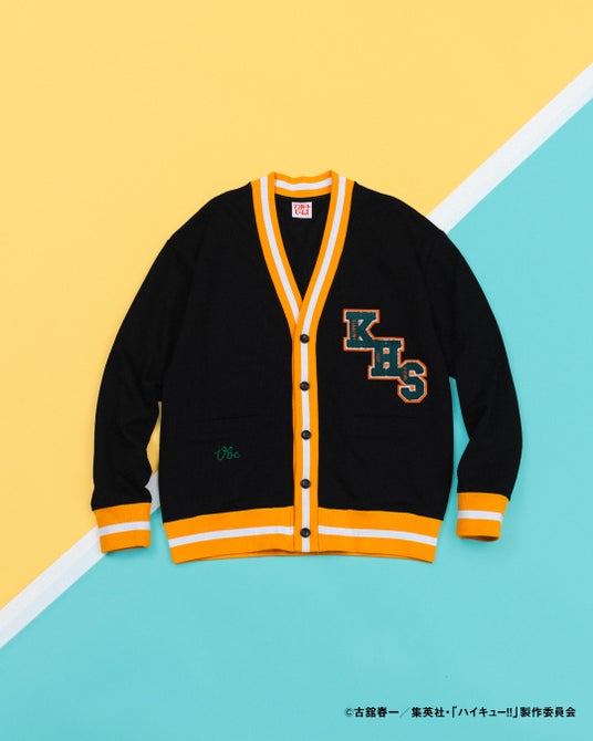 スポーツカード風のデザインに烏野高校と音駒高校の両選手があしらわれた躍動感あふれるTシャツや両高校のイメージをカラーリングに落とし込んだスウェット生地のカーディガン。刺繍スカジャン風のデザインのアイテムなどをご用意しています。