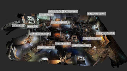AI搭載型360°カメラで3D空間そのものを保存することにより、ユーザーは「貸し切り状態」の会場を “いつでも、どこでも” 探索することができます。映画美術の魅力、そして松竹お化け屋本舗がお届けするジャパニーズホラーの世界をぜひご堪能ください。