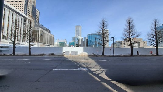 札幌駅南口横、北5西1地区に設置されている仮囲いの横約100m