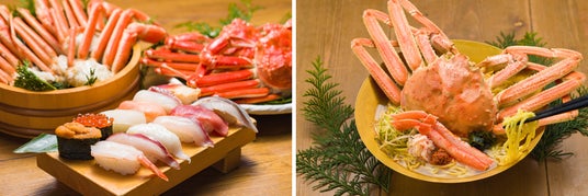 ズワイガニと高級寿司が思う存分食べられると話題!