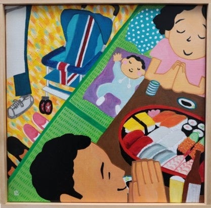 ありがとうございます。まさに想い出のシーンはこんな感じでした。ここで寝ている長男も2月に41歳になります。こんなに素敵なイラストになって、とても嬉しいです。