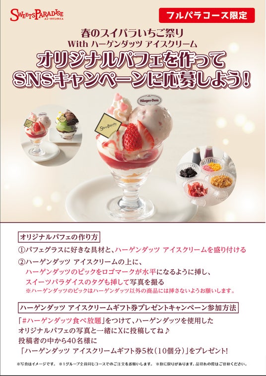 2025年3月1日(土)より「春のスイパラいちご祭りwithハーゲンダッツ アイスクリーム」を開催。さらに開催期間中はSNSキャンペーンも実施いたします。