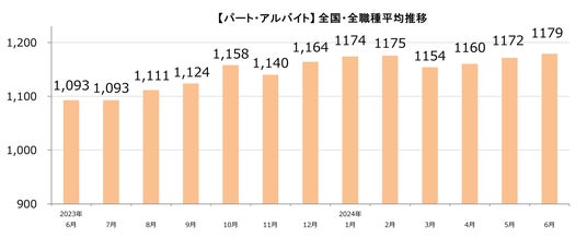 【パート・アルバイト】全国・全職種平均時給は1,179円。前月比+7円。前年同月比+86円。