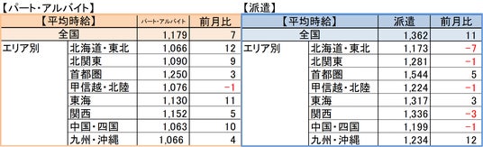 パート・アルバイトの平均時給は今年で3度目の過去最高更新となった。全12職種中、前月から平均時給が下がったのは『営業』カテゴリのみであり、全体として賃上げ傾向が続いている。
