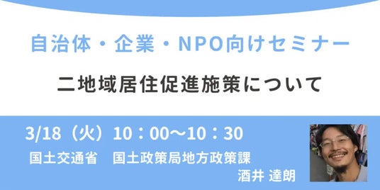 企業版ふるさと納税を活用した地域課題解決プラットフォーム「river(リバー)」を運営する株式会社カルティブ(本社:神奈川県横浜市、代表取締役:池田 清)は各省庁の出している補助金・交付金の活用方法を自治体様・企業様向けに伝える「地方創生制度活用シリーズセミナー」として、2025年3月18日(火)に国土交通省担当者によるオンラインセミナー「二地域居住促進施策について」を開催します。本セミナーでは、複数の地域に拠点を持つ「二地域居住」について詳しくご説明いたします。