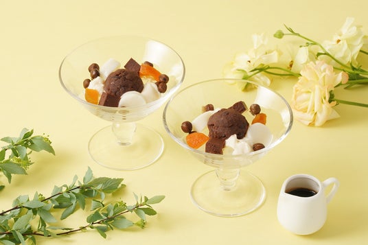 カカオの果肉やチョコレートのフルーティさがあることで、フルーツあんみつのようにお楽しみいただけます。まずはそのまま一口お召し上がりいただき、とろりとした黒蜜をかけてお召し上がりください。