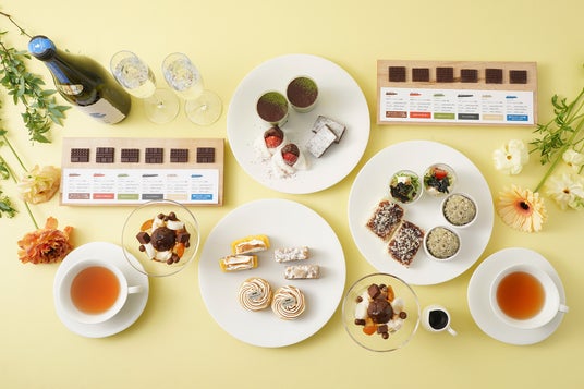 チョコレートの原材料はカカオと砂糖のみで、産地や製法の違いによって果実やナッツのような風味を表現しています。産地によって異なるチョコレートの味わいや、スイーツとしての味わいと板チョコレート単体での味わいの違いなど、さまざまに食べ比べてお楽しみください。