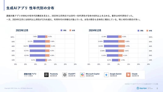 最新の生成AIアプリ市場の概況、ユーザーの年代別分析などさまざまな視点でアプリデータを調査しました。