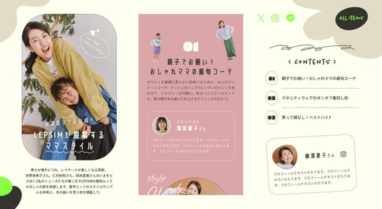 今回公開するのは、自身もママであるスタイリスト・塚田綾子さんによる着こなしポイントの解説付きの親子コーデや、横澤さんの休日をVLOG風に表現したコンテンツに加え、ママの悩みを解決するマタニティアイテムを横澤さんが紹介するパートなど盛りだくさんのWEBページです。さらに、LEPSIMと横澤さんの公式Instagram では、VLOGやおすすめアイテムをテレビショッピング風に紹介するスペシャルムービーも公開します。