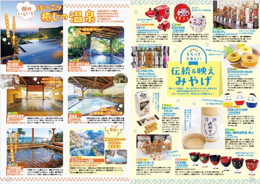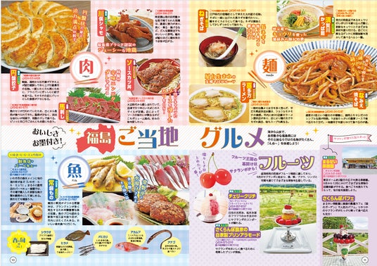 「ふくしまプレデスティネーションキャンペーン」の特別な企画とあわせて、福島観光もしっかりと楽しんでいただきたい、そんな思いから本書では「おいしさお墨付き!福島ご当地グルメ」、「ほっこり癒しの温泉」と題してグルメと温泉施設をご紹介。お出かけ先でのお食事、癒しをお探しの際はどうぞ♪
