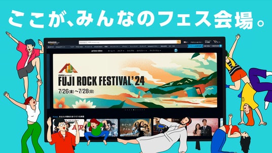 Amazon Musicは、オフィシャルサポーターとして参画する野外ロック・フェスティバル『FUJI ROCK FESTIVAL ‘24』(主催:SMASH、7月26日~28日開催)のアーティストパフォーマンスを、Prime VideoとTwitchにて無料で世界同時に独占生配信いたします。また、この生配信を記念し、Amazon限定カラー公式Tシャツも本日よりAmazonのオンデマンド・プリントサービスAmazon Merch on Demandにて販売開始いたします。さらに、音楽フェスの多様な楽しみ方を提案するブランドキャンペーン「ここがみんなのフェス会場」を本日より展開し、新しいWeb CMを放映開始したほか、Amazon Music公式X(@amazonmusicjp)では、おうちでフェスが楽しめるグッズが合計140名様にあたる「今年のフジロックはおうちでも楽しもう フォロー&リポストキャンペーン」を実施します。