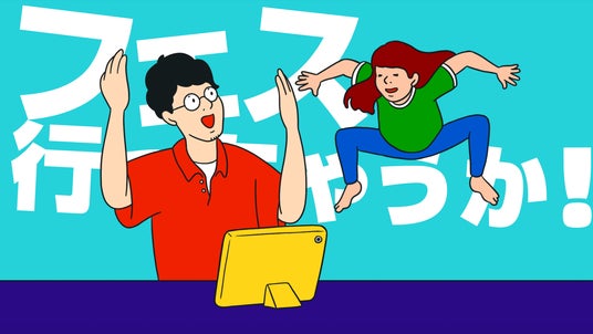 雨の日、どこにも出かけられない父と娘。父親がピザのデリバリーを提案すると、喜ぶ娘。さらに、音楽フェスに行く提案をすると、さらに喜ぶ娘。外は雨でも、2人は家の中でタブレット端末の画面を見ながら、音楽フェスの盛り上がりを楽しむのだった。「親子」篇(15秒):URL: https://youtu.be/dJZz3WWp1CI