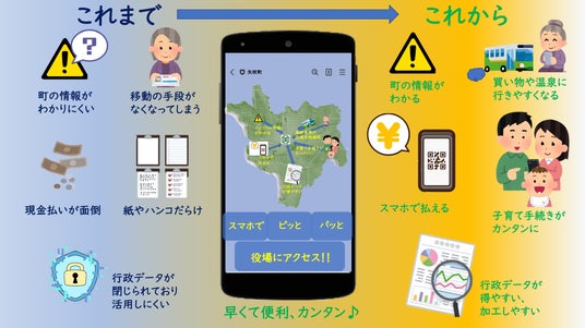 本町は、人口減少・少子高齢化など、様々な地域課題を解決するため、また町民の利便性向上および庁内の業務効率化を目的として、デジタル技術を活用することにより、人々の生活をより良いものへと変革することを目指しています。そのため、住民本位での持続可能な行政サービスの提供と共生社会の実現に向けた取組を、総合的かつ計画的に推進すべく、令和3年度に「デジタル田園タウン構想事業基本方針」を策定いたしました。本事業では、誰一人取り残さない持続可能な地域の再構築と経済発展の実現に向けて取り組んでおり、今後、プレスリリースやSNS等を通じて各取組の情報発信を強化していきます。