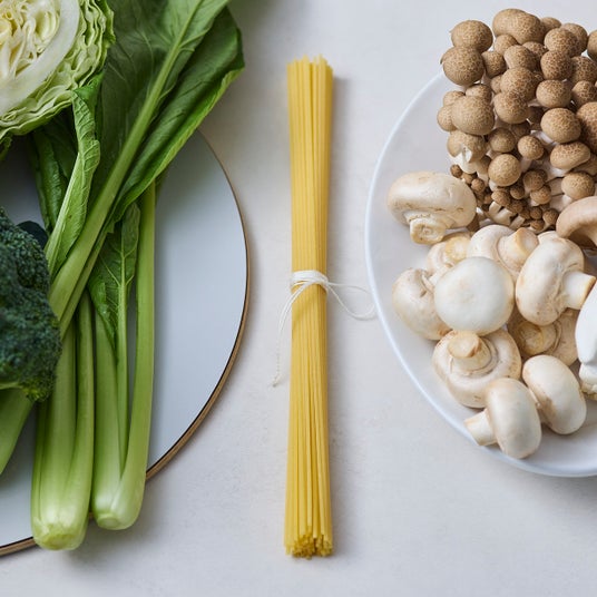 ☑パスタに合わせる食材は、低糖質野菜、食物繊維たっぷりのきのこ、腸活におすすめな発酵食品!