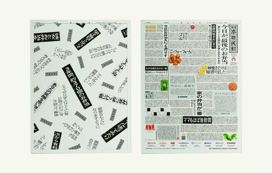 「祝・福島卒弁民報」とは、高校生活最後のお弁当を祝える特別紙面として、1月21日の福島民報朝刊として発行したものです。78名の保護者から募った思い出あふれるメッセージを、紙面いっぱいにあしらっています。紙面でお弁当をふろしきのように包むことで、高校生の門出を祝えます。