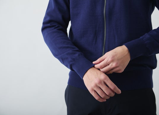 手首周りや裾のリブはきつすぎず、ゆるすぎず。