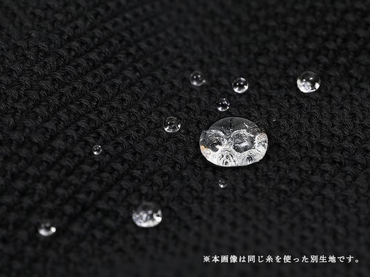 今回は糸段階で撥水加工を施した特別な糸で編み立てることで、ニット本来の柔らかさはそのままに、機能性を付加しています。