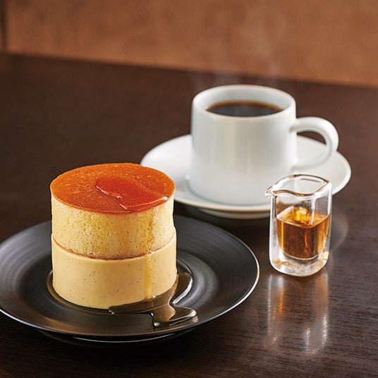 もっちりとしたプリンの上に、アツアツのホットケーキをのせました。“ひんやり”と“あたたかい”を一度に楽しめるおいしさです。