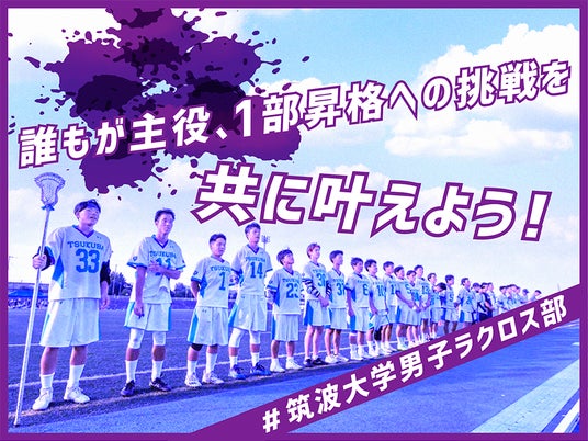 こんにちは!筑波大学男子ラクロス部です。私たちは過去何度も一部昇格を目指し、しかし、入れ替え戦では悔しい敗北を繰り返し、あと一歩のところで一部昇格を果たすことができませんでした。そしてその結果を、我々は自分達の目で観ています。先輩方が本気で練習に取り組み、敗北した姿は今でも悔しく、先輩方を勝たせてあげられなかったことが我々の原動力に繋がっています。
