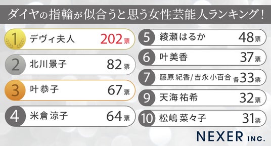 株式会社NEXER・ダイヤの指輪が似合うと思う女性芸能人に関する調査
