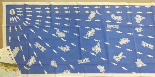 パッケージには、民話「鮭の招く石」のアニメに出てくる「石」に向かって鮭が引き寄せられているデザインとなっており、他にもアニメに出てくる可愛らしいキャラクターが描かれています。昨今外国人観光客を中心に手ぬぐい収集が人気を博しており、コレクターの方にも喜んでいただけるデザインとなっています。この機会に是非お手に取ってみてください。