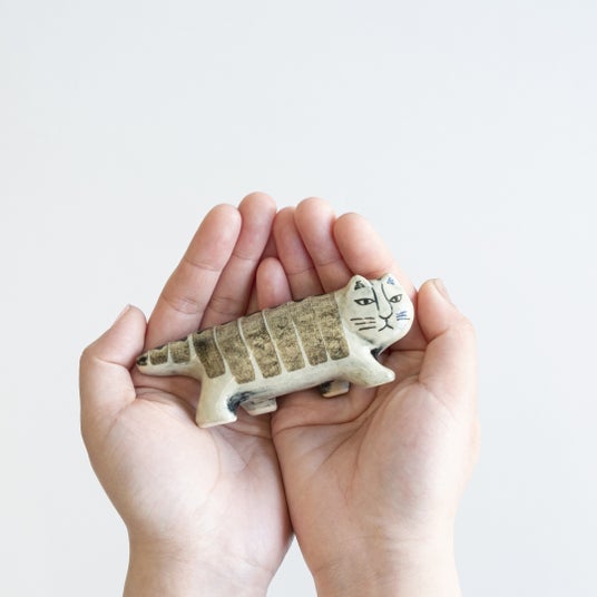 リサが作った猫を再現するとともに、伝統の釉薬と新しい着彩技法をかけあわせて生まれた野良猫です。