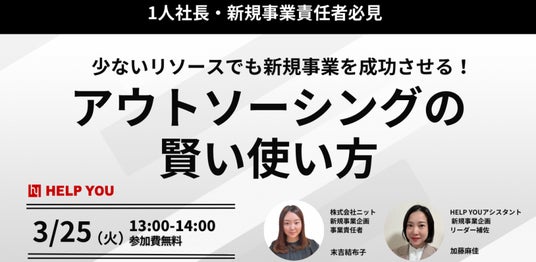 【1人社長・新規事業責任者必見!】限られたリソースで新規事業を成功に導くアウトソーシング戦略セミナー開催<3月25日(火)13:00~>