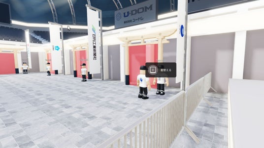 参加企業のロゴをあしらったユニフォームとチームフラッグを用意(クリックで自由に着替え可能)。ゲートを潜ると各チーム専用のマップに移動。