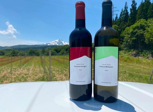 ・赤ワイン「トヨルージュ」(左)・白ワイン「トヨブラン」(右)