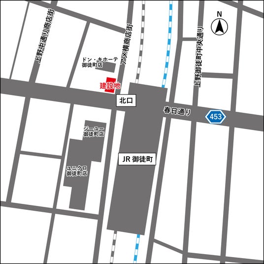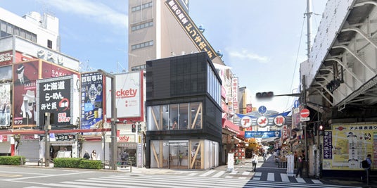 南側・東側の一面ガラス張りによって、木の空間と御徒町駅前・上野アメ横商店街の独自固有な賑わいが混ざり合うデザインとしています。