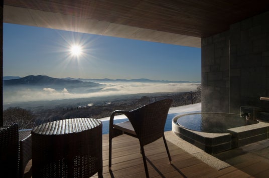 ホテルが建つ標高約1,000mから望む絶景に包まれながら、日常の喧騒を忘れ、静謐で特別なひととき