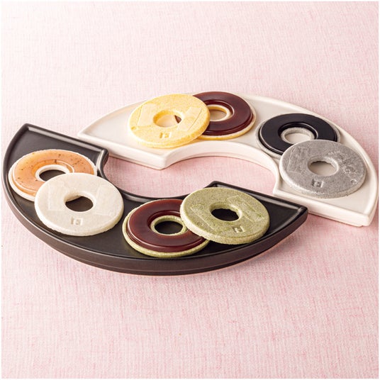4種の味を楽しめる、ドーナツ型のはさみ最中です。皮と餡とが個別包装になっているため、いつでもサクサクの食感をお楽しみいただけます。