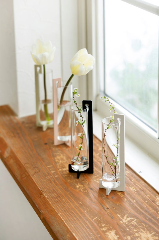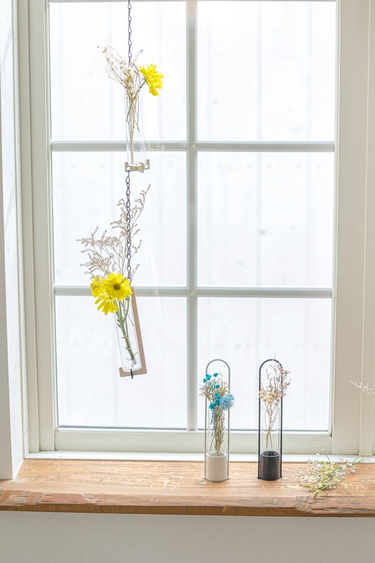 好評の Flower vase に新しい仲間が誕生。本体にスチールを使用したフラワーベースです。ガラス容器を遮る部分がないため、花の美しさを最大限に楽しめます。