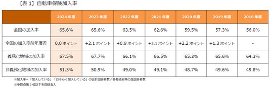 - 自転車保険への加入率が全国で65.6% 【表1】