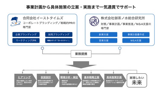 この度、株式会社御茶ノ水総合研究所と合同会社イーストタイムズは、地方中小企業の価値への共感ムーブメントを、財務・採用・人事・経営面からもサポートし、事業再生・事業承継・事業成長につなげていくサービスを開始しました。